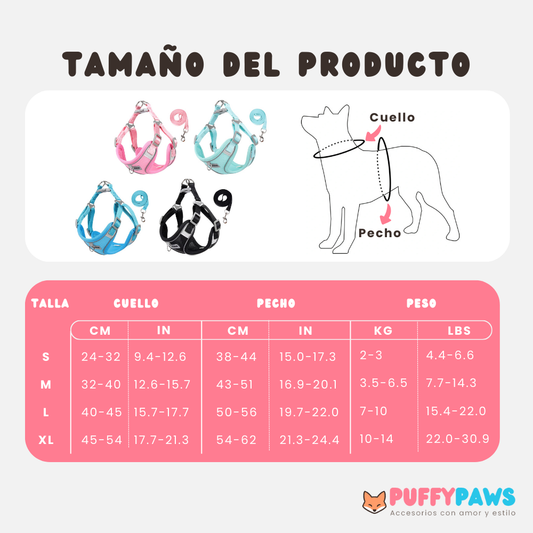 Chaleco arnés para perros con liberación rápida y tiras reflectantes